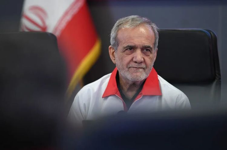 4月15日,伊朗总统佩泽希齐扬在首都德黑兰视察伊朗红新月会时听取汇报。新华社记者 沙达提 摄
