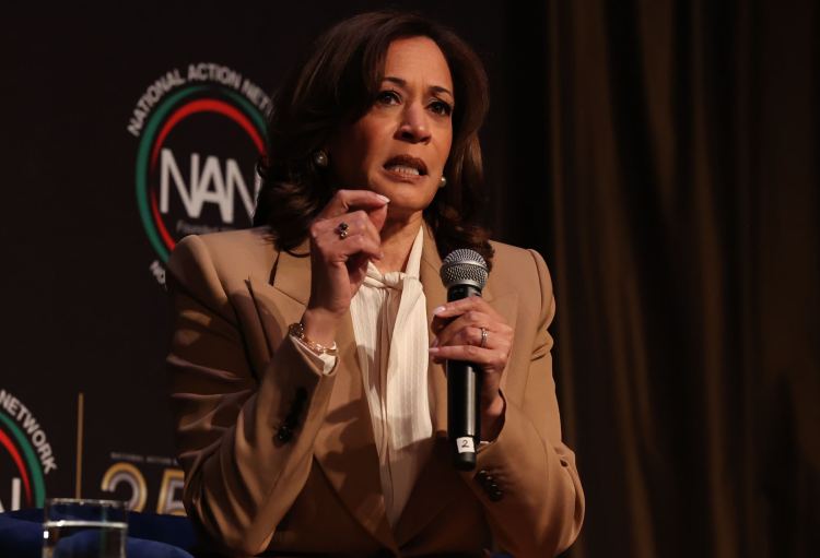 当地时间4月10日,哈里斯在纽约一场活动上发表讲话。图源:外媒