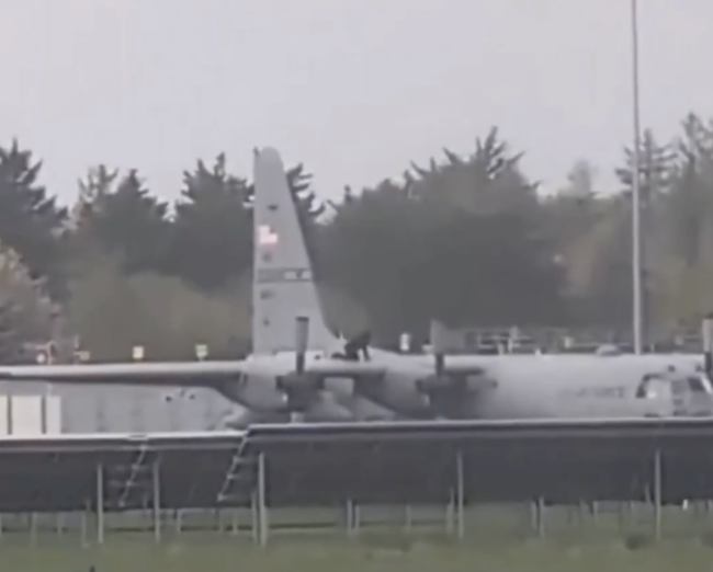 RT称,网上流传的视频显示,一名男子爬上了一架停放在该机场一条偏僻滑行道上的美军C-130“大力神”运输机,并疑似用斧头或锤子式样的工具砸向飞机机身。爱尔兰警方表示,嫌疑人是一名40多岁的男子,他擅自闯入机场禁区,随后被捕。