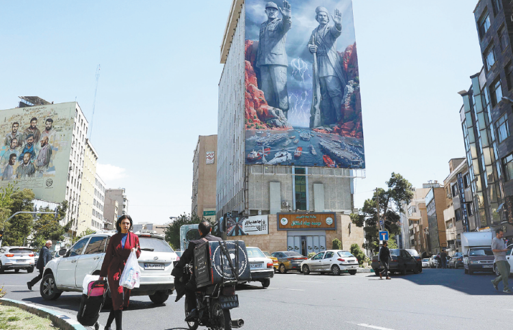 4月15日,伊朗德黑兰街头的大型广告牌。广告牌主题为:霍尔木兹海峡永远处于伊朗控制之中。(视觉中国)
