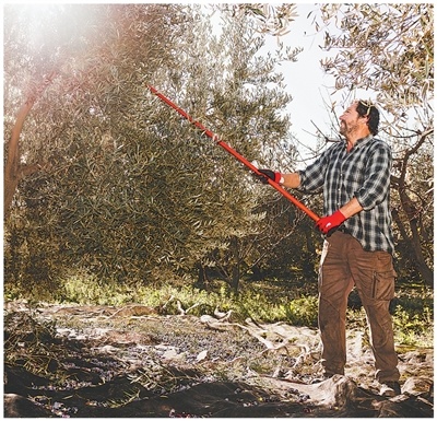 在西班牙埃斯特雷马杜拉大区的一处橄榄园,农户在采收橄榄果实。