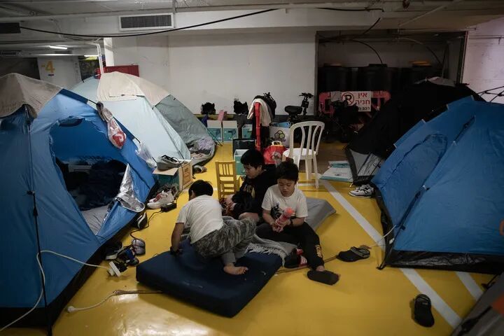 在以色列特拉维夫市中心,一处地下停车场成为具象的“避风港”。这里原本是车辆停放的空间,如今却挤满了临时搭建的帐篷。由于一些居民楼缺乏避弹间,不少家庭选择搬到这里居住,以躲避频繁来袭的导弹。