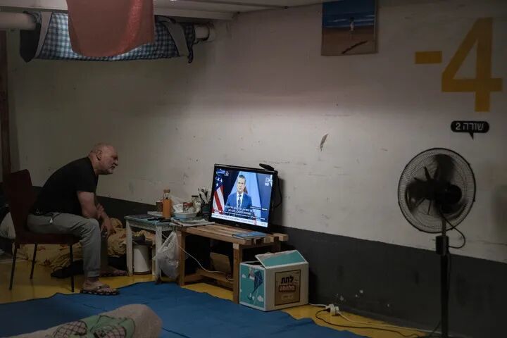 62岁的特拉维夫市民戴维坐在一台电视机前,目不转睛地盯着新闻里美国军方人员正在阐述停火的政策立场。“人们已经太疲惫了,这样的日子谁都撑不了太久。明天,但愿我可以回家。”