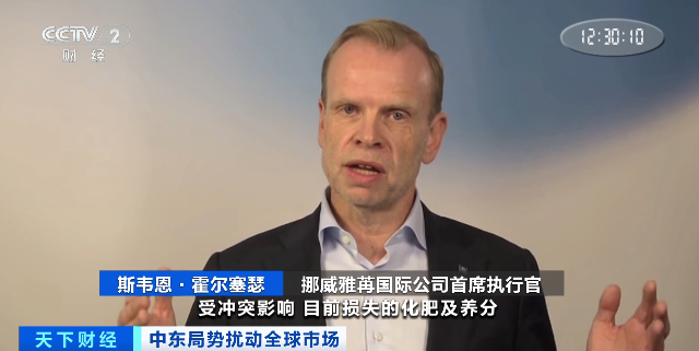 挪威雅苒国际公司首席执行官 斯韦恩·霍尔塞瑟:受冲突影响,目前损失的化肥及养分,相当于每周少生产约200亿份餐食。
