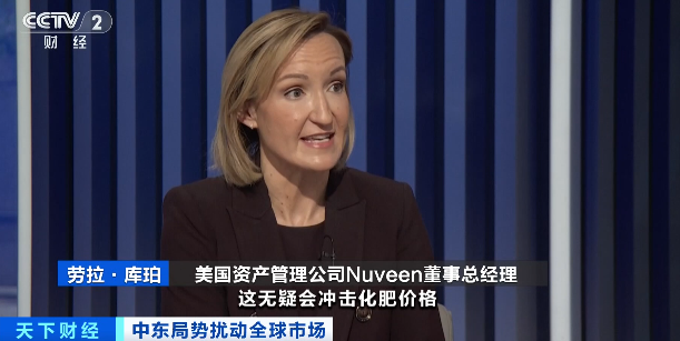 美国资产管理公司Nuveen董事总经理 劳拉·库珀:这场冲突持续时间越长,影响就越大,这无疑会冲击化肥价格,也会波及那些对整个供应链来说至关重要的关键大宗商品,而这带来的连锁反应就是,我们可能会看到食品价格显著上升。