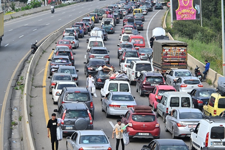 黎巴嫩和以色列从当地时间17日0时起正式开始停火,为期10天。图为黎巴嫩南部的西顿市,民众纷纷返回家园,城市出现交通拥堵。(视觉中国)
