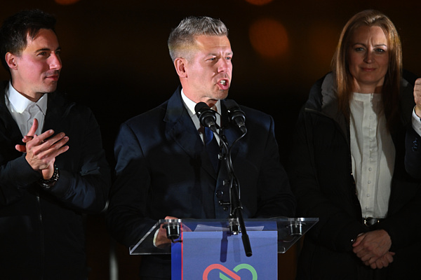 当地时间4月12日,匈牙利布达佩斯,毛焦尔·彼得发表演讲。 图源:视觉中国